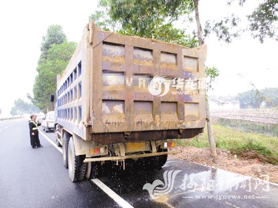 下图:交警在五云公路清查超载超速载沙车。通讯员 摄