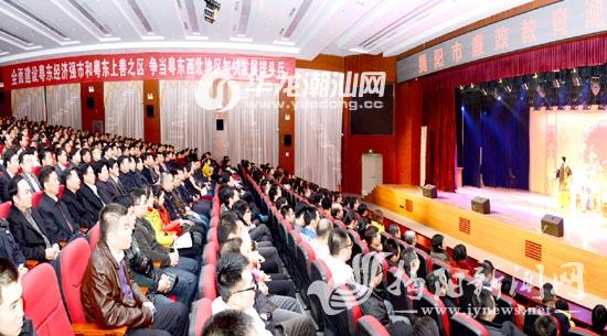 23日,陈绿平等市四套班子领导同志与市直各单位代表共800多人集体观看揭阳市廉政教育潮剧晚会。郑楚藩 卢泽鸿 摄