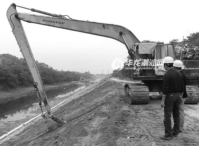 图为潮南区南山截流河综合整治工程加紧推进。