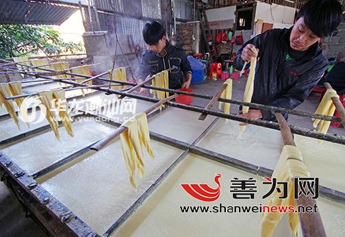 海丰县附城镇一家庭作坊正在制作腐竹为春节供货备好货源