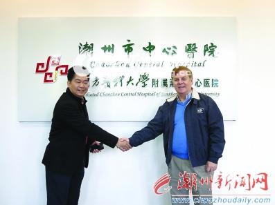 图为市中心医院陈锦生院长与澳大利亚皇家墨尔本理工大学药学院院长Peter J. Little(右)亲切会面,对墨尔本理工大学药学院教授的造访表示热烈欢迎。蔡立辉