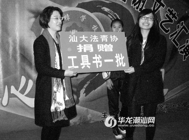 在该校近日举行的社会爱心企业团体捐赠帮扶仪式上,中国光大银行汕头分行、汕大法青协等再次向金樟学校捐赠了一批电脑及近千册图书。据悉,近年来社会各界捐赠帮扶金樟学校的爱心物资超10万元。