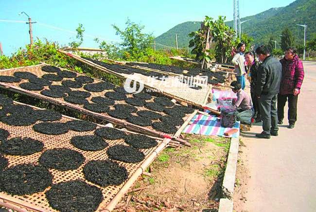 被称作“澳菜”的南澳紫菜,因南澳岛气候适宜、海域水质含氮量高而味道鲜美、营养丰富,成为远近闻名的特产。本月3日中午,记者从南澳县青澳湾北回归线广场出来,驱车沿着环岛公路往北行驶约5公里,看到路旁有一些深澳镇村民搭着竹排在灿烂的阳光下晾晒紫菜,同时向过往游客推销自产的紫菜(见图)。