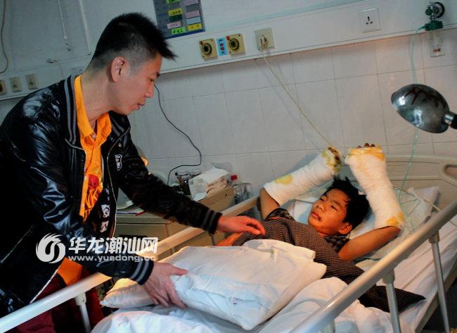 今年15岁的林佳财是潮阳西胪镇陂头村人,元旦期间在家中烧水准备洗澡时,突然晕倒,结果双手被滚烫的开水严重烫伤,十只手指恐怕难以保住,且随时有生命危险。林佳财与其妹妹在陂头村村民眼中是一对“事实孤儿”,自小就因家庭变故由祖父母抚养,家庭生活非常困顿,这次突然晕厥可能与平时营养不足体质虚弱有关。现今,躺在病床上的林佳财双手扎满厚厚的纱布,外露的指甲发黑发紫,不时露出痛苦的表情,有时忍不住疼痛呻吟着:“疼……疼……”!