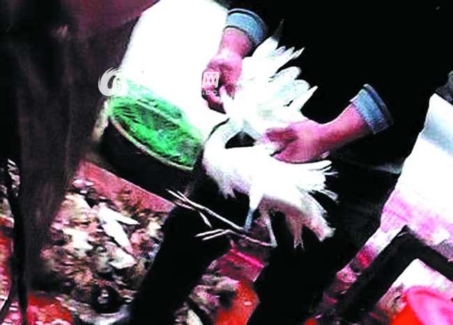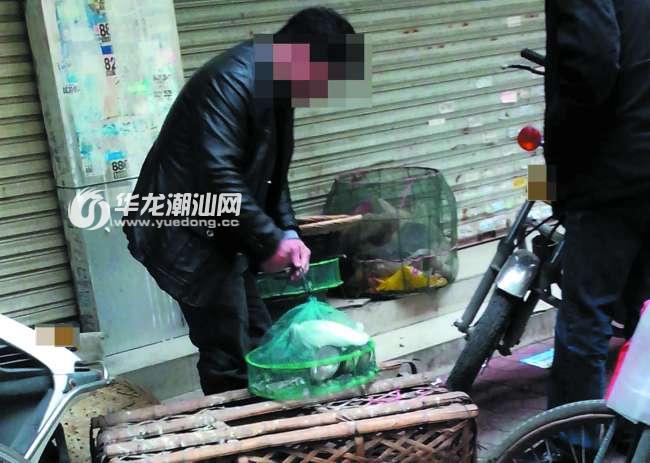 随着秋冬进补季节的到来,有些不法摊档经营者为了牟利,竟然顶风销售野鸟。在接获热心读者报料后,连日来,记者在市区一些市场流动的“三鸟”摊档暗访。在华坞路,记者看到一违法经营者正在售卖野生白鹭。该经营摊档前摆放着活鸡、兔子等“三鸟”,野鸟就置放在身后人行步道上的一个笼子里,外面还用编织布等杂物遮挡住,相对隐蔽。