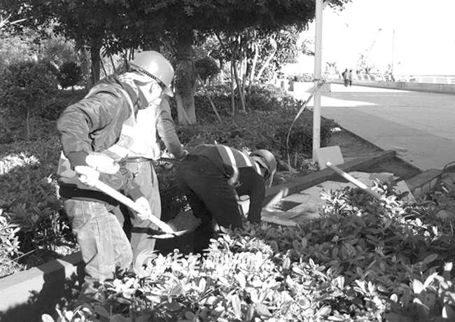 本报讯(记者 刘婉萍 摄影报道)近日,到市区海滨长廊休闲活动的市民和游客可能会留意到,有部分施工人员正在对海滨长廊的一些出入口进行优化和改造(如图)。原来,这是市城管部门针对海滨长廊出入口原步级不太方便残障人士游玩及解决“回头路”问题而实施的海滨长廊出入口景观建设工程。工程完成后,将增加交通性节点如坡道、园路等29处,其中利用原有步级改造的坡道有23处。