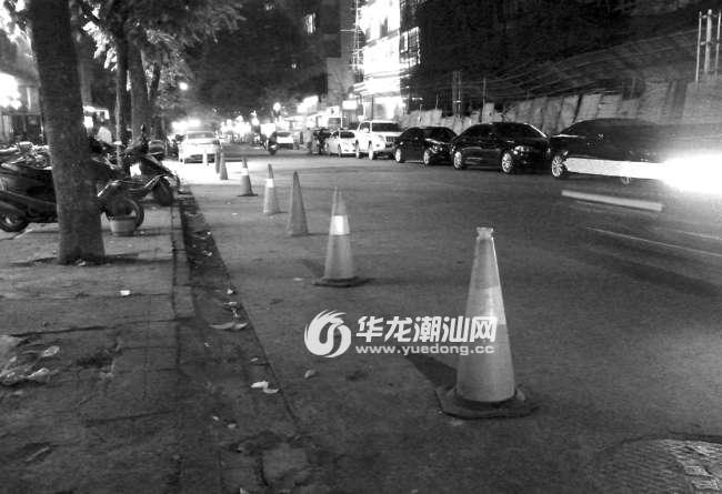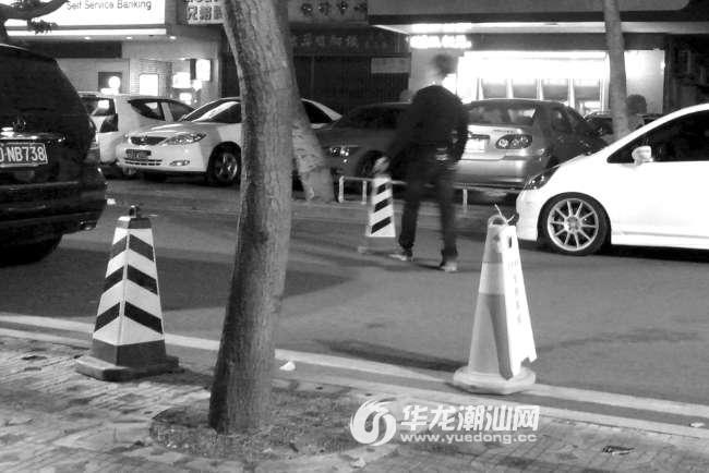 同样,在市区迎宾路的“酒吧街”路段,每天晚上这里的公用停车位也大多被周围的酒吧等娱乐场所“分割”了,各家娱乐场所都“占据”了门前以及附近的公用停车位,以供前来消费的顾客泊车专用。记者现场观察到,除了路旁划线的公用停车位外被占外,连步道下的非机动车道也被摆放上障碍物占用,当成了“自家资源”支配,以满足前来消费的顾客停车所需。