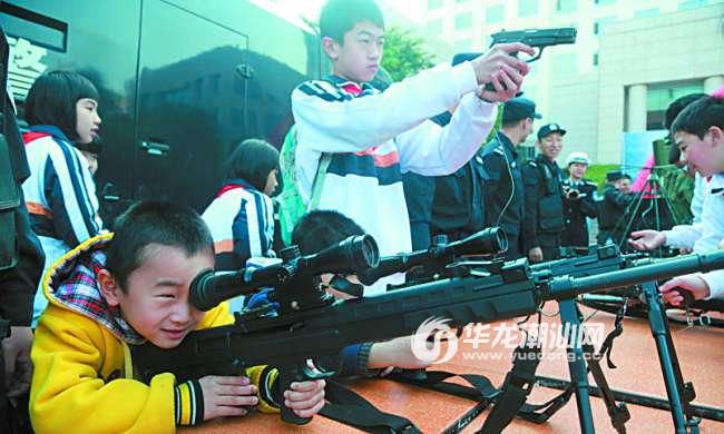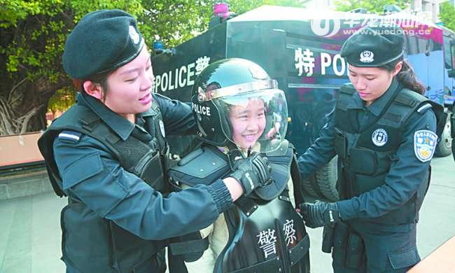 本报讯 记者刘文钊、陈史摄影报道:今天上午9时30分多,市公安局举行110宣传日暨警营开放日活动,金阳小学、金涛小学及部分民警家属近300人走进警营,参观了警史馆和110报警服务台,亲身感受110工作的艰辛以及110民警如何为群众排扰解难,零距离接触狙击步枪、防爆服、装甲车、消防车等各种警用装备(见图)。据统计,2014年,汕头110报警服务台受理群众各类报警、求助、咨询超百万起次,救助群众八千余人。