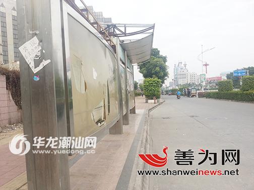 市区的公交站点设施频遭破坏。图为