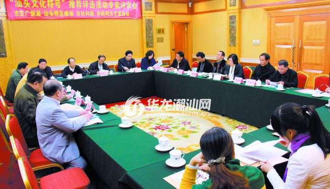 本报讯 记者周敏、黄泽群、李德鹏摄影报道:昨天,市文广新局、汕头特区晚报、市社科联、市民间文艺家协会举办“汕头文化符号”推荐评选活动首场专家评审会,与会近20名专家经过认真讨论研究,审定出30多个“汕头文化符号”候选项目,近期将在本报公布供市民读者投票推选。