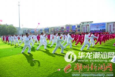 昨天上午,饶平县黄冈镇老年人体育协会在刚建成的县运动场举办老年人体育健身迎春表演大会。来自县城各地的老年人体育健身队队员身着整齐服装,先后表演了红歌联唱、太极拳、保健操、太极球等节目,精彩的表演吸引了众多群众观看。余献民摄