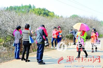 眼下正是青竹梅花绽放的季节。饶平县汤溪镇青竹径村漫山遍野的青竹梅花竞相盛开,远远望去,好一幅万花齐放、白似瑞雪的美丽画卷。由于天气晴好,不少市民结伴来到这里观赏游玩,尽情享受冬日美景。图为游客在青竹径村观赏梅花。本报记者 林雄锐 黄春生 摄影报道