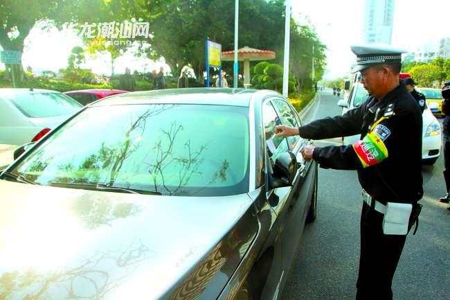 上图:交警处罚乱停车辆。 本报记者 杜一方 摄