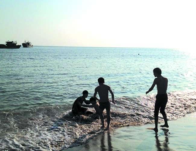 本报讯(记者 陈晓敏) 已是寒冬腊月,冰冷的海水依然挡不住游客的热情。刚刚过去的周末,记者在南澳县钱江湾看到,一群来自福建的年轻游客脱掉外衣,跳进海中踏浪游泳。