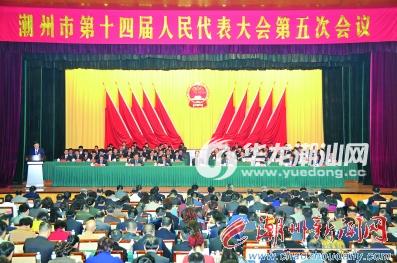 本报讯(记者庞磊成)昨天上午,潮州市第十四届人民代表大会第五次会议在市党政机关会堂开幕。开幕大会由中共潮州市委书记、大会执行主席李水华主持。代理市长卢淳杰向大会作政府工作报告。
