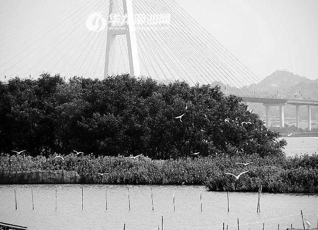沿着田间弯曲的小路散步来到牛田洋堤,这里空气清新地令人心醉。在石大桥西侧的堤坝上,远望红树林,不时可以看到海面上翱翔的海鸥(见图)。偶尔有几只白鹭嬉戏在滩涂边上,或在觅食,或在闲庭散步,怡然自得。如此壮丽的景象吸引了许多摄影爱好者前来拍摄创作。如今牛田洋的景观长堤绿树葱葱,有“落霞与白鹭齐飞”的湿地自然保护区景色,这里已具备打造水乡式休闲旅游基地的得天独厚优势。