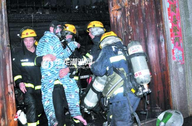 本报讯(记者 林子海 林鹏 摄影报道) 昨天凌晨5时许,潮南区两英镇紫云路一民宅发生火灾,多名群众被困。潮南消防官兵接报后立即到场展开救援,从熊熊火海中救出了包括两名孩子在内的4名群众。