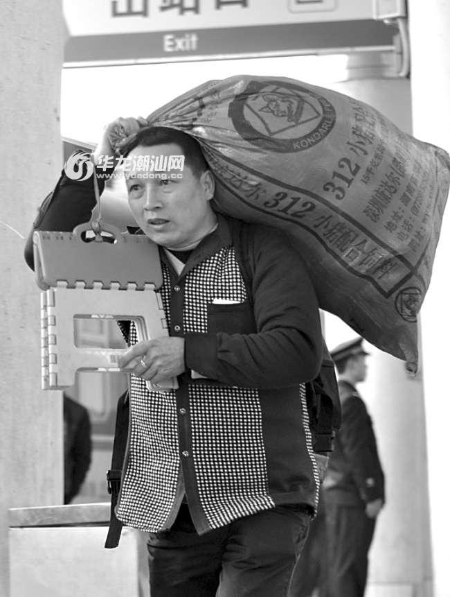 “既能在桶里放置食物和回家的用品,还能当板凳。”来汕打工十余年的佘先生准备乘坐3288次列车返回江西老家,他随身的行李除了一个大背包,就是5只套在一起的塑料桶。佘先生告诉记者,他买到的是无座票,所以准备了几个塑料桶,除了装杂物外,套在一起、盖上盖子,便成为一只坚固的座椅,免去长时间站立的疲惫。