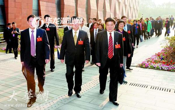 图为汕头代表团代表们精神饱满步入会场。 本报记者 方淦明 摄