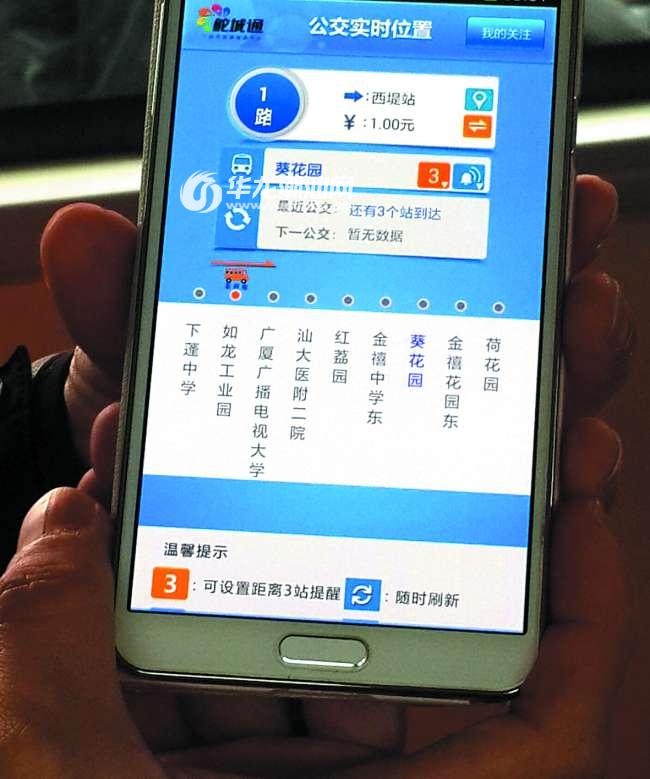 本报讯 (记者蔡晓丹 实习生陈洁葳 郑楠摄影报道)很多市民,尤其是公交一族都曾有过在寒风中苦等公交车的经历。相信过不了多久,公交一族坐在家里、办公室等公交车将不再是梦!出门坐公交车,坐哪路车,站点在哪儿,车什么时候到?用时下一首流行歌曲的一句歌曲便可概括“天空飘来五个字儿,那都不是事儿。”