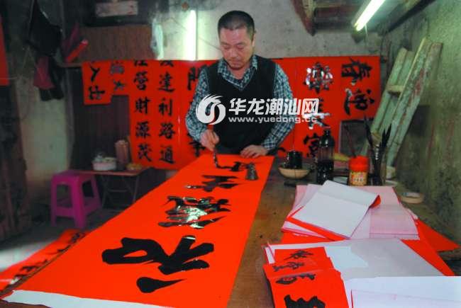 贴春联是市民迎春习俗中不可或缺的“重头戏”,但或许许多人还不知道,粤东有名的春联专业村——渔洲的金洲(以前叫李厝寨)社区居委就坐落在我市的龙湖区鸥汀街道辖区内。这个现有300多户、1700多人的村居翰墨飘香,全村书写春联蔚然成风至少在150年以上,家家户户写春联、挂春联、卖春联,成了独特的“村容村貌”。